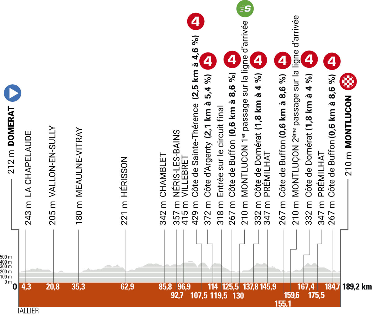 1ª: Domingo 8 junio. Domerat (10:10)-Montluçon (14:50), 189,2 km