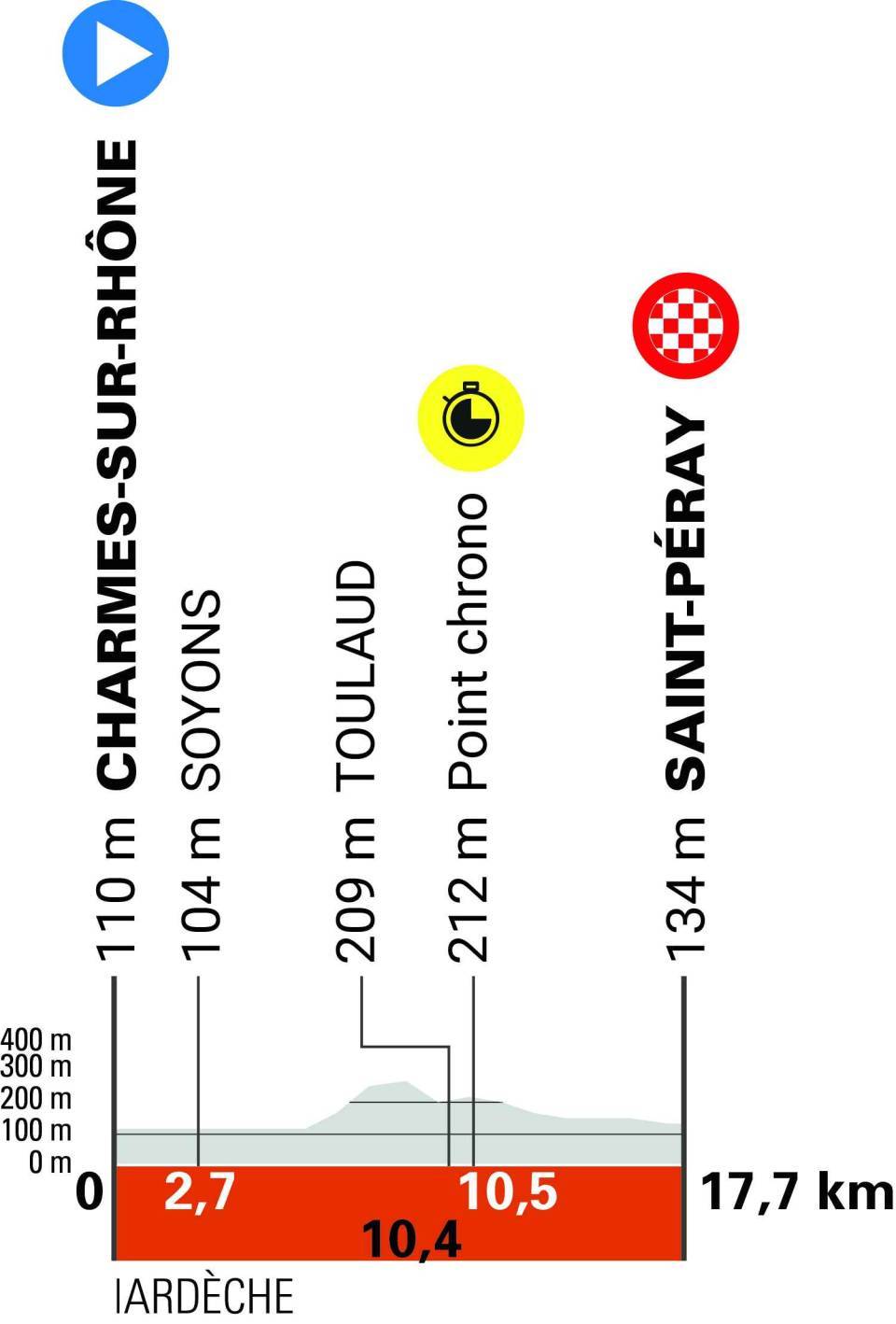 4ª: Miércoles 11 junio. Charmes-sur-Rhône (14:15)-Saint-Péray (17:10), 17,7 km contrarreloj indvidual