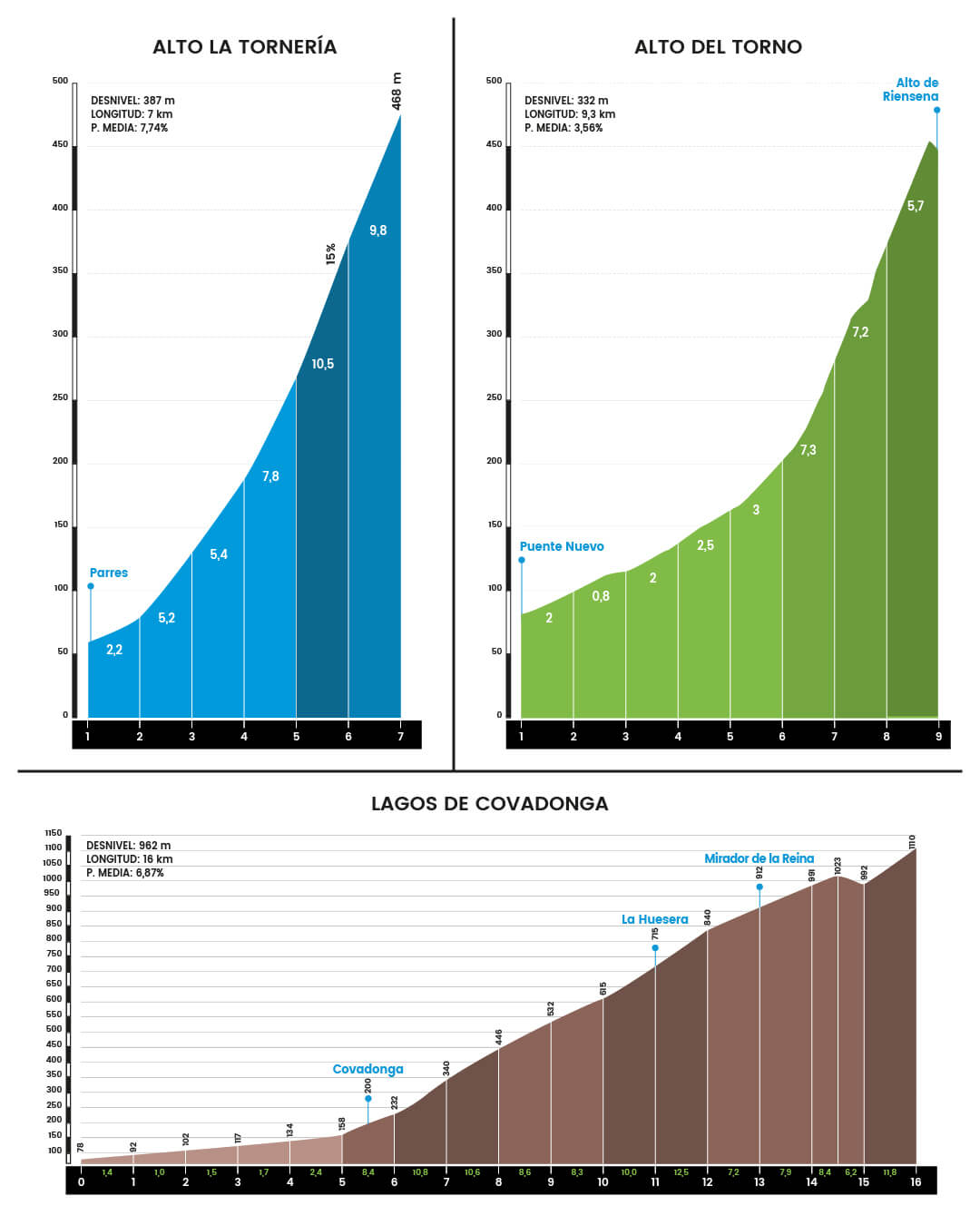 Varias localidades asturianas han visto pasar a los casi 3.000 participantesque han disfrutado de las carreteras asturianas que desafiaban sus piernas con las ascensiones a la Tornería, Riensena y la subida final a los Lagos. Cangas de Onís, Arriondas, Ribadesella, Nueva de Llanes, Posada de Llanes, Celorio, Porrúa, Parres, Puente Nuevo, Soto de Cangas y Covadonga han sido las protagonistas de un recorrido que hace las delicias de los amantes del ciclismo.