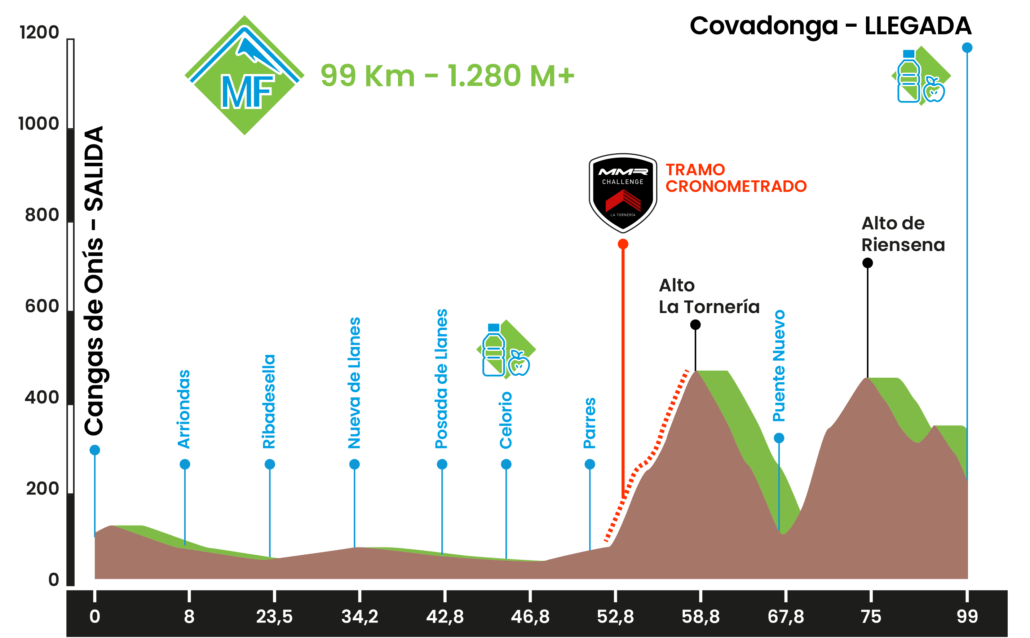La recogida de dorsales se realizará en el aparcamiento explanada frente a la Estación de Autobuses – C/ Picos de Europa en Cangas de Onís los días 31 de mayo y 1 de junio desde las 16:30 horas hasta las 21:30 horas y el mismo día de la prueba desde las 6:00 horas hasta las 7:30 horas. Todo participante deberá llevar, de forma obligatoria y visible: el dorsal, el chip y la placa de la bicicleta.