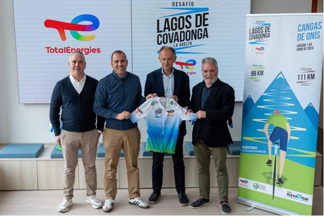 Las oficinas de TotalEnergies en Oviedo acogieron la presentación de la 32ª edición del Desafío Lagos de Covadonga by TotalEnergies. Al acto acudieron Javier Sáenz de Jubera, presidente de TotalEnergies Electricidad y Gas; José Antonio Díaz Soto, presidente de la Federación Asturiana de Ciclismo; Jose Manuel González Castro, alcalde de Cangas de Onís; y Sergio Piquero García, presidente del Club Ciclista Navastur.