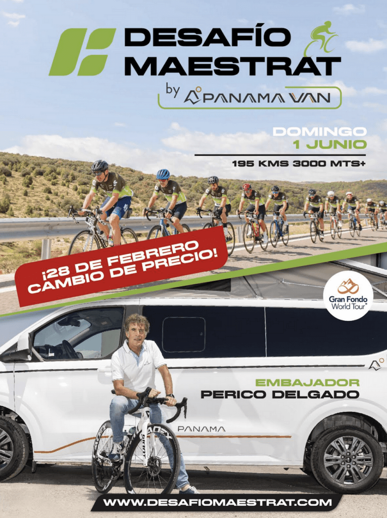 En esta 5ª edición y de la mano de Panama Van, el Desafío Maestrat contará con Perico Delgado como embajador de la prueba, exciclista profesional y ganador del Tour de Francia de 1988 y 2 Vueltas a España, como embajador de la marcha. Prepárate para disfrutar de un recorrido único y vivir una aventura llena de esfuerzo, recorrer los increíbles parajes del norte de Castellón y el mejor