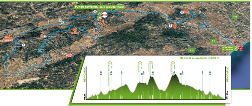 Desafío Maestrat Ciutat de Benicarló es una prueba exigente, con una distancia de 201km y 3000 m desnivel, lo que la equipara con las marchas más importantes a nivel nacional y convertirá al “Desafío Ciutat de Benicarló” en una de las marchas referentes del calendario nacional. En este duro recorrido se coronarán 4 puertos, el Alto de Cervera, La Mirona y se complementará con La Bandereta y La Serratella, entre ellos también encontraremos diversas pequeñas cotas que se lo pondrán fácil a los ciclistas.