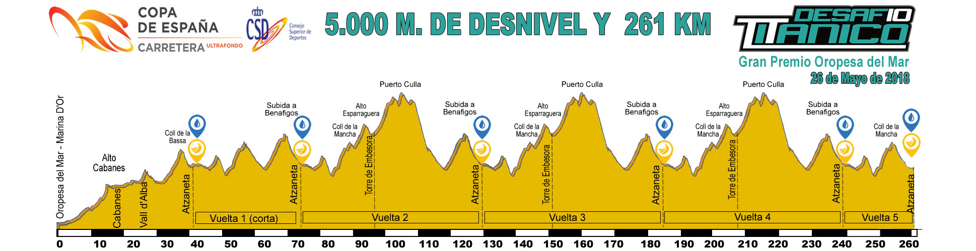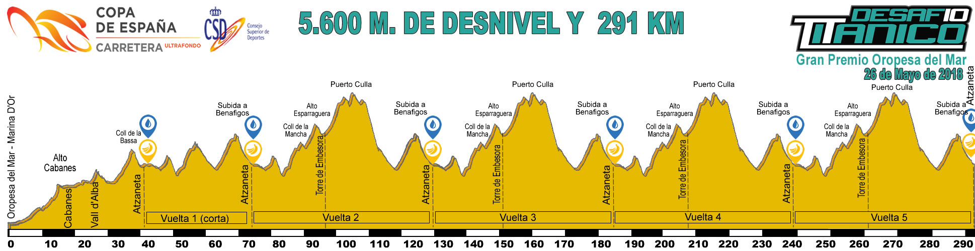 El Desafío Titánico. G.P. Oropesa del Mar, segunda prueba puntuable para la Copa de España en carretera de Ultrafondo, cambia de recorrido debido a los condicionantes impuestos por las autoridades para su celebración por la ruta inicial que consistían en una sola salida y una capsula de seguridad con una distancia máxima de 20 minutos, con lo que la mayoría de los participantes serían eliminados en el trascurso de la carrera.