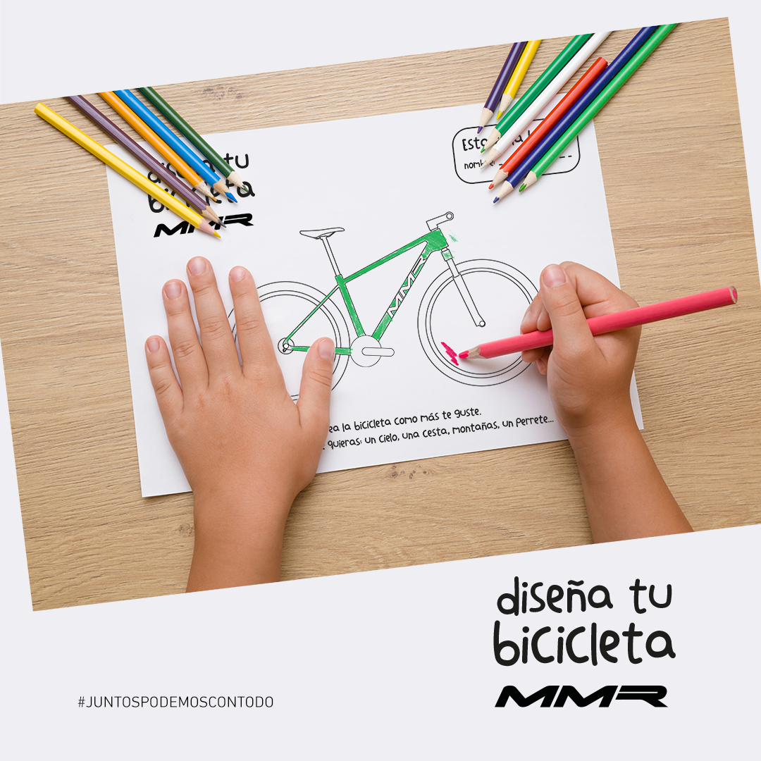 En el link de abajo se puede descargar la plantilla para «dibujar la bici de tus sueños, luego hazle una foto o escanea la hoja y compártela con nosotros a través de tus redes sociales etiquetando a @MMRBikes y con el hashtag #diseñatuMMR».