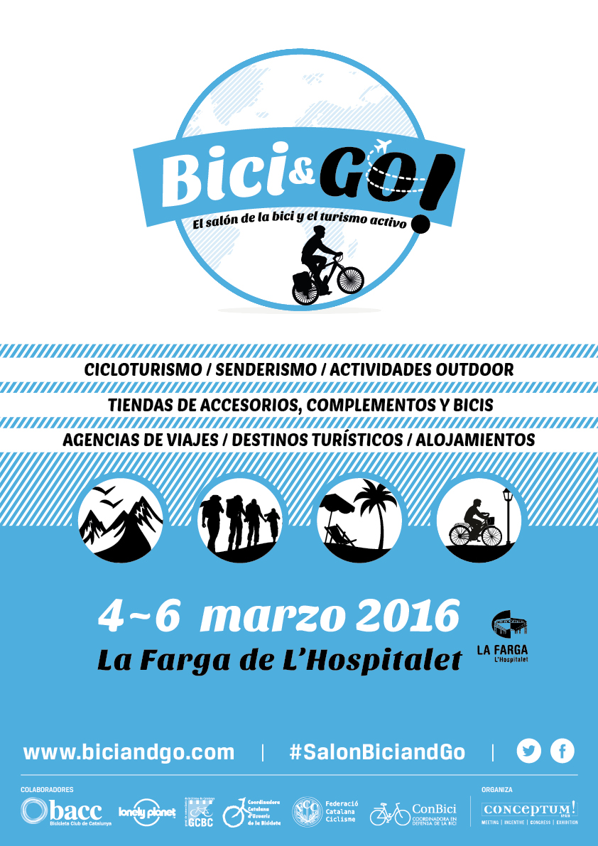 Conceptum, empresa de origen belga con una experiencia de más de 20 años en la organización de salones, presenta la 1ª edición del Salón Bici&GO!, el salón de la bicicleta y del turismo activo, que se celebrará los días 4, 5 y 6 de marzo de 2016 en La Farga de L’Hospitalet.