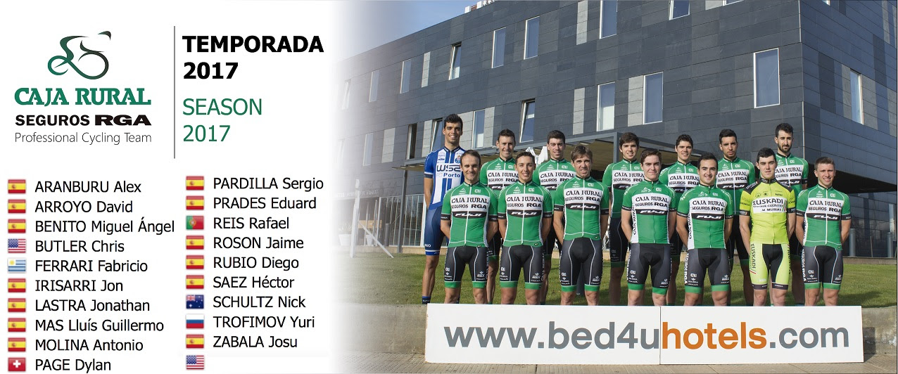 La pretemporada 2017 dio el pistoletazo de salida con la primera concentración de los equipos profesional y élite/sub-23 de Caja Rural-Seguros RGA en la localidad navarra de Tudela. Diecinueve hombres en el plantel profesional- a falta de una última incorporación- y veinticinco en el equipo amateur -con la novedad del fichaje de Óscar Pelegrí, actual Campeón de España de la categoría- lucirán el ‘verde’ el próximo año. Javier Aramendia finalmente no ha enovado por la escuadra de Juanma Hernández.