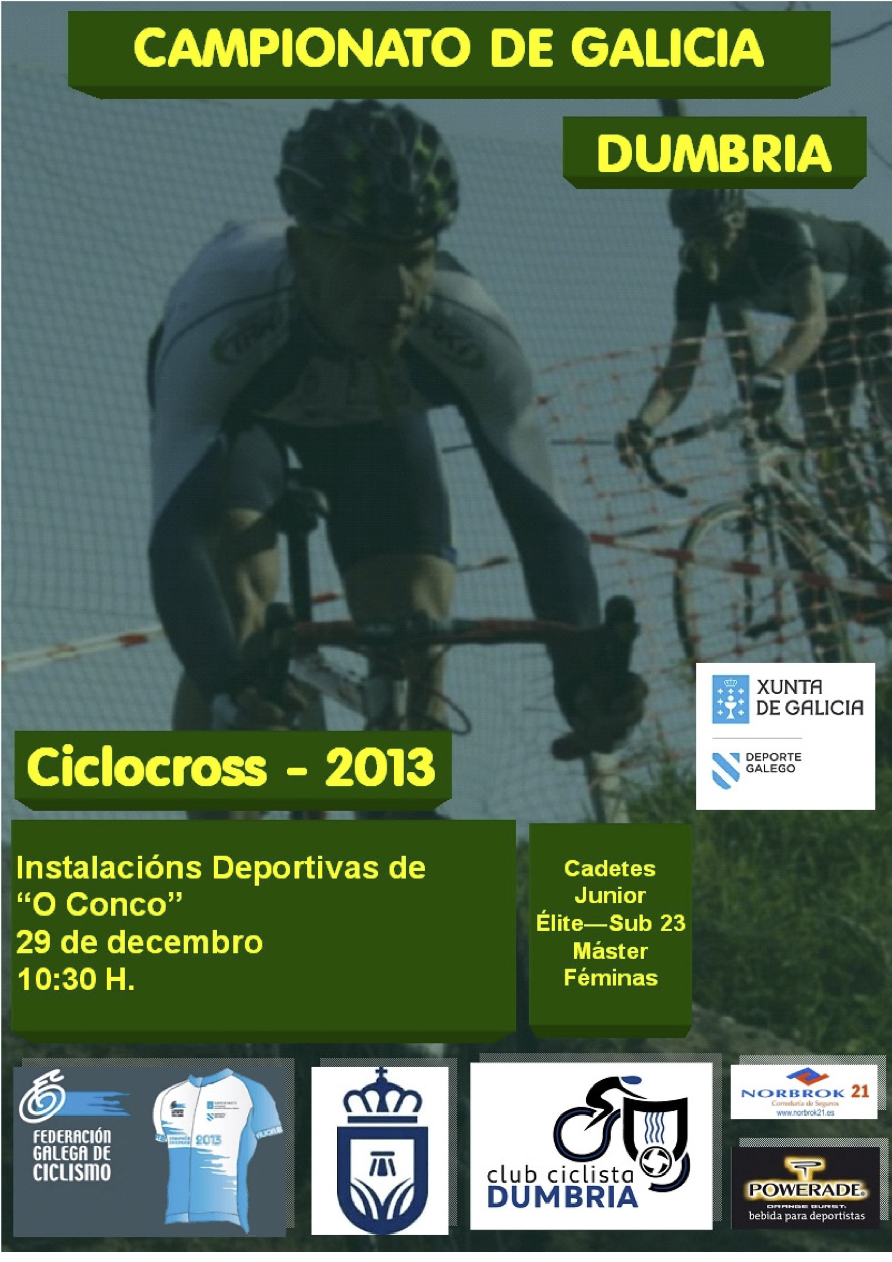 El próximo jueves, día 26, a las 17.30 h. en la Casa do Concello de Dumbría, tendrá lugar el acto de presentación del Campeonato de Galicia de Cyclo-cross 2013, que se disputará en las inmediaciones de las Instalaciones Deportivas de O Conco el día 29 de diciembre.