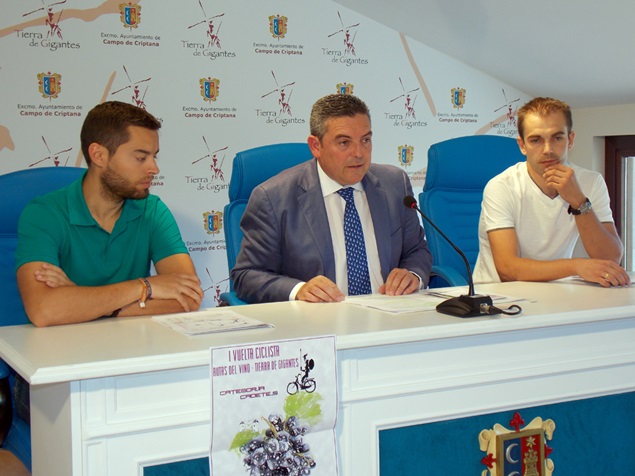 El alcalde de Campo de Criptana, Santiago Lucas-Torres, acompañado por el concejal de Deportes, Jorge González, y por el ciclista criptanense, Óscar García-Casarrubios, presentaba la primera edición de la Vuelta Ciclista Rutas del Vino-Tierra de Gigantes, una iniciativa deportiva con la que se intenta recuperar el espíritu de las antiguas Rutas del Vino cuya última edición se vivió en el año 2006, y con el que se pretende poner en valor el territorio de La Mancha.