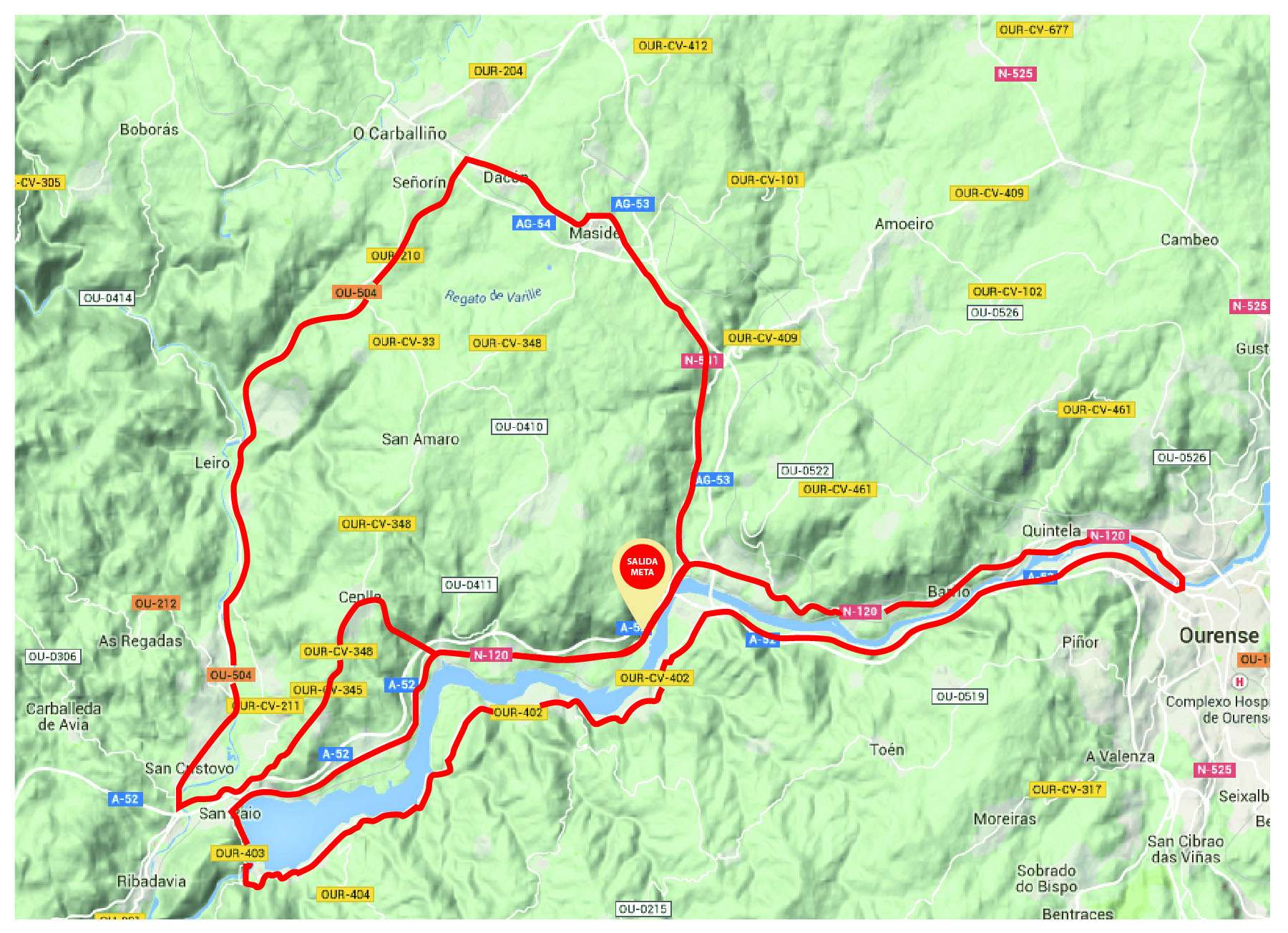 La prueba se disputará por carreteras de los municipios de Cenlle, Punxín, Ourense, Barbadás, Toén, Castrelo de Miño, Ribadavia, Maside, O Carballiño, Leiro, Beade y finalizando, de nuevo, en el municipio de Cenlle. La hora de salida está prevista a las 16.50 horas.