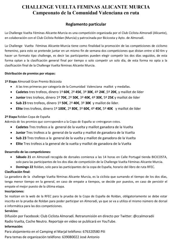 Las féminas tienen cita doble este fin de semana entre la Comunitat Valenciana y la Región de Murcia. Y comenzarán el sábado en la localidad alicantina de Almoradí con el Gran Premio Bicicosta, primera prueba puntuable de la Challenge Vuelta Féminas Alicante-Murcia que culminará el domingo con la carrera de Roldán, puntuable para la Copa de España.