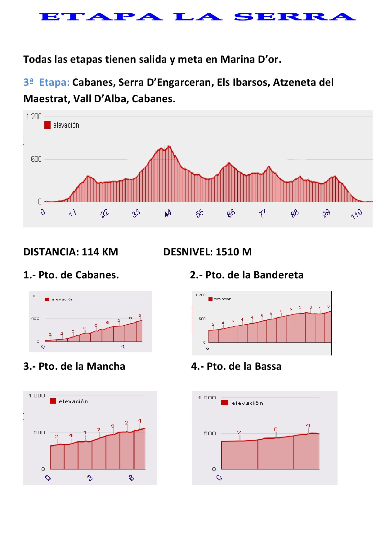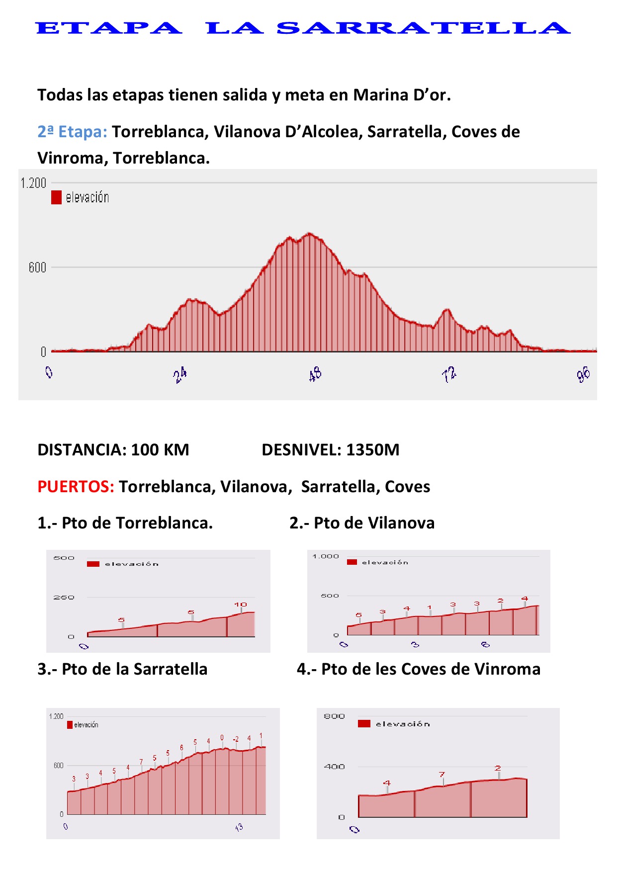 La provincia de Castellón está considerada como uno de los mejores lugares de Europa para la práctica de ciclismo durante prácticamente todo el año. Las carreteras de Castellón son apreciadas por los cicloturistas de toda España y Europa por su calidad, tranquilidad y seguridad. No solo el buen clima y la calidad del asfalto, sino la gran variedad de desniveles, puertos de montaña y niveles de esfuerzo que puedes elegir para tu preparación o disfrute, hacen de Castellón un destino por descubrir para los ciclistas. Combinado con unos maravillosos paisajes y parques naturales con 300 días de sol al año, todo ello junto al mar. Además contamos con la colaboración de Marina d’Or que pone a nuestra disposición sus magníficas instalaciones hoteleras, únicas en Europa, y todas sus alternativas de ocio como parques temáticos, excursiones a lugares de interés, playas, deportes, actividades y espectáculos programados que complementan la estancia de los ciclistas y sus acompañantes, sin olvidarnos de su selecta gastronomía.