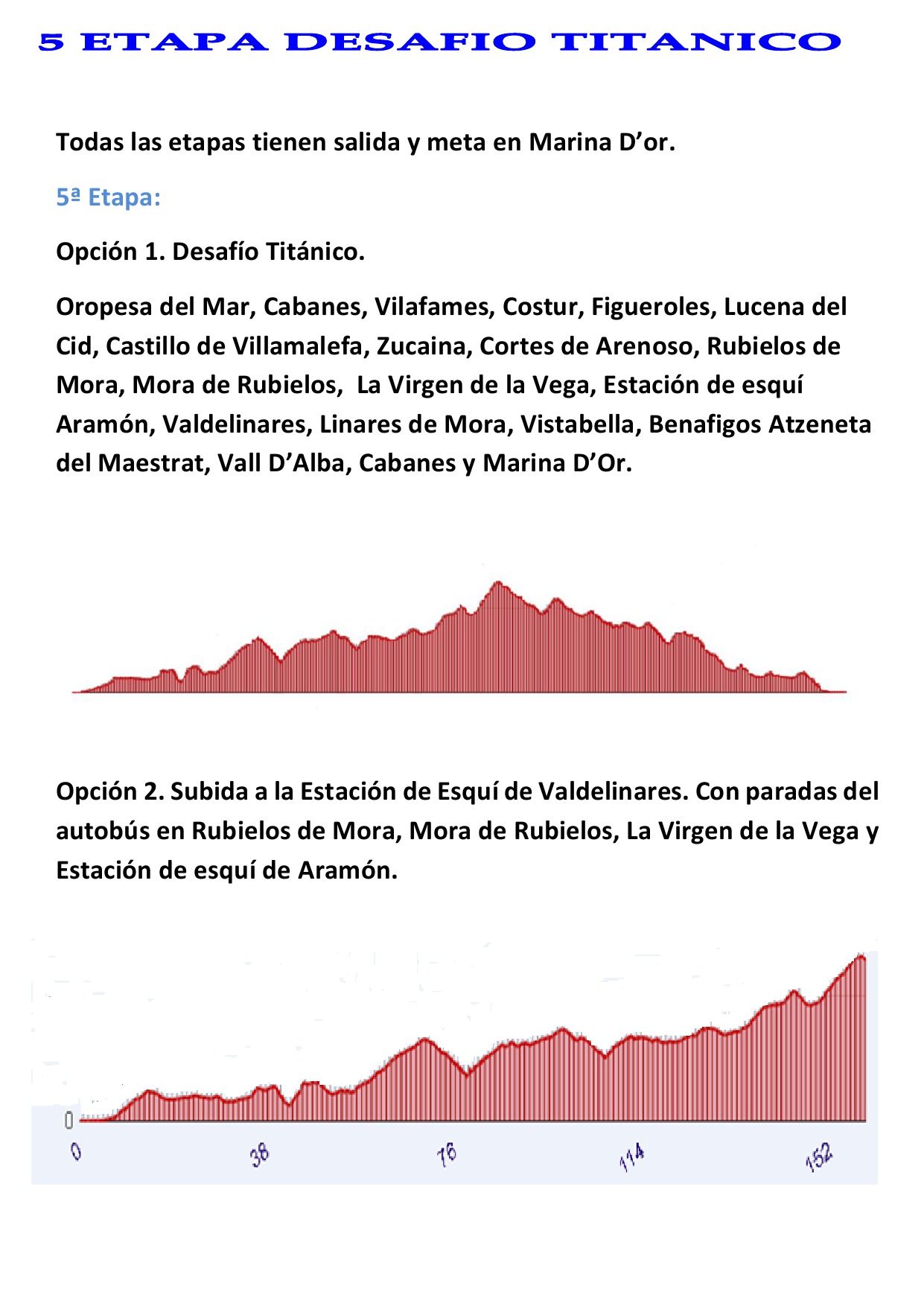 El II Campus La Titánica lo componen cuatro etapas que suman unos 400 kms. y 5.500 m. de desnivel, aunque tenemos una versión más light con menos kms. y desnivel, dos tardes de ponencias y charlas, y nuestra tarde de relax en el mayor Balneario de agua marina de Europa. Más la guinda final del Desafío Titánico o la subida a las pistas de Valdelinares donde os recogerá el autobús, con tres paradas en Rubielos, Mora de Rubielos y Virgen de la Vega como fin para los que así lo elijan.
