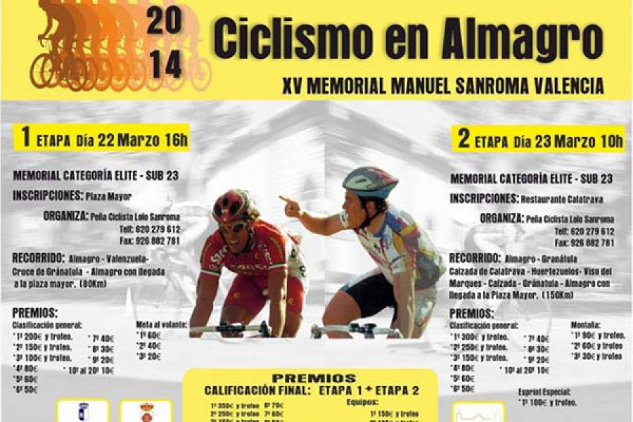 Este fin de semana la localidad de Almagro (Ciudad Real) acoge la 15ª edición del Memorial Manuel Sanroma Valencia, una prueba para élite y sub-23 organizada por la PC Hermanos Sanroma Valencia que por primera vez se celebra en dos etapas.