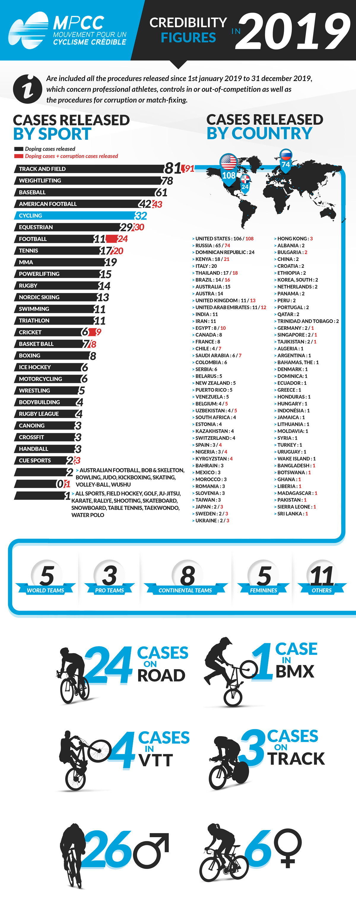 Desde el MPCC recuerdan que “el año 2019 estuvo marcado por la Operación Aderlass, que reveló la existencia de una red internacional de dopaje sanguíneo que involucra varios deportes y más particularmente al ciclismo”. En ese mismo sentido, el informe señala que “no está descartado que pronto se revelen más nombres que añadir a los siete casos conocidos en nuestro deporte (6 hombres y 1 mujer)”.