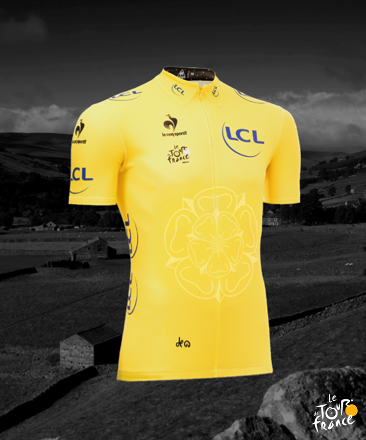 MAILLOT LIDER TOUR 14La organización de la Grande Boucle ha desvelado el diseño del próximo maillot amarillo del Tour de Francia 2014. Un concepto similar al de 2013, pero al que le ha añadido la rosa blanca en el centro de la parte delantera, el símbolo de Yokshire, la comarca desde donde parte la prueba el próximo 5 de julio.