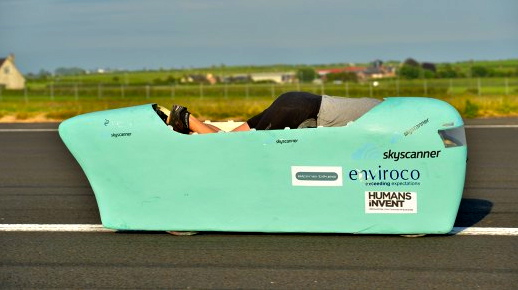 El excampeón mundial de ciclismo Graeme Obree estableció un nuevo récord al montar una extraña bicicleta en posición decúbito ventral.