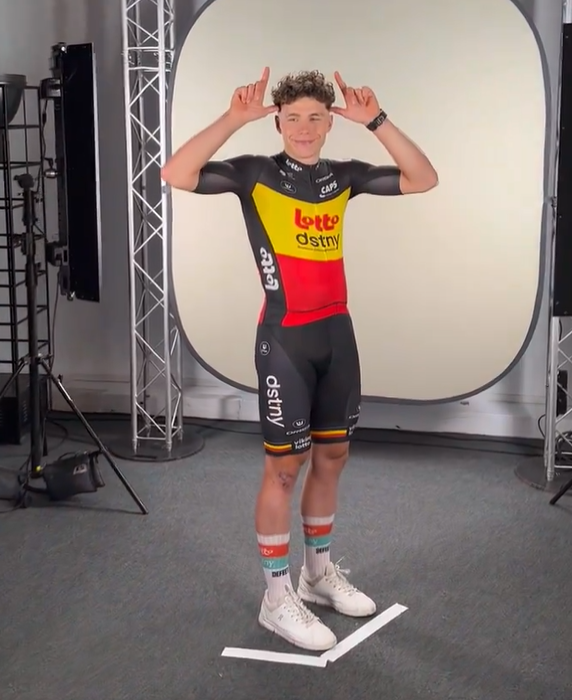 28 junio. Arnaud de Lie comenzará este sábado su primer Tour de Francia, donde lucirá el maillot de campeón belga recién obtenido al batir a los mejores velocistas del país en Zottegem. Ahora volverá a enfrentarse a Jasper Philipsen, quien fue el gran dominador del pasado Giro de Italia: «Creo que aquí va a ser de otro nivel, ya que todos los velocistas dan lo mejor de sí. En el nacional belga pude vencer a Philipsen. Si puedo hacerlo de nuevo aquí, estaré cerca de ganar». Su primera gran vuelta supondrá un gran aprendizaje y un reto, puesto que deberá superar las grandes jornadas de montaña para llegar a Niza: «Tengo mucha curiosidad por todo el circo. Ya se nota que esto es diferente a todas las demás carreras. Quiero sobre todo adquirir experiencia aquí. No sólo es mi primer Tour, sino también mi primera carrera que durará tres semanas. Será importante tener buenas piernas en el momento justo. Quiero aprender precisamente eso. En el Tour de Suiza probé la montaña, pero ahora me enfrento por primera vez a la alta montaña de verdad. Como velocista, sabes que vas a sufrir. En Suiza subí bastante bien. Por supuesto, no estaba en el primer grupo, pero sí en el segundo o el tercero. Así que todo se reduce a conservar toda la energía posible para llegar a la cima en el momento adecuado».
