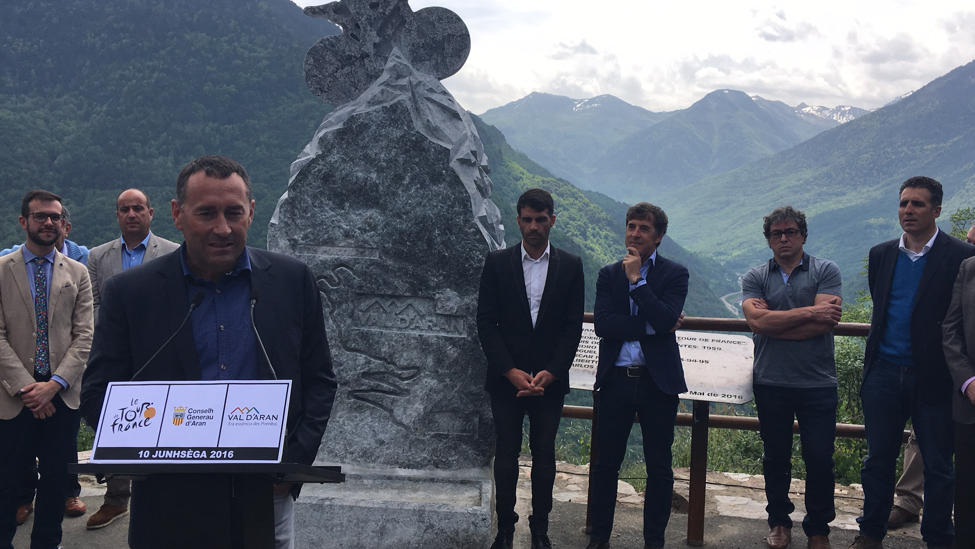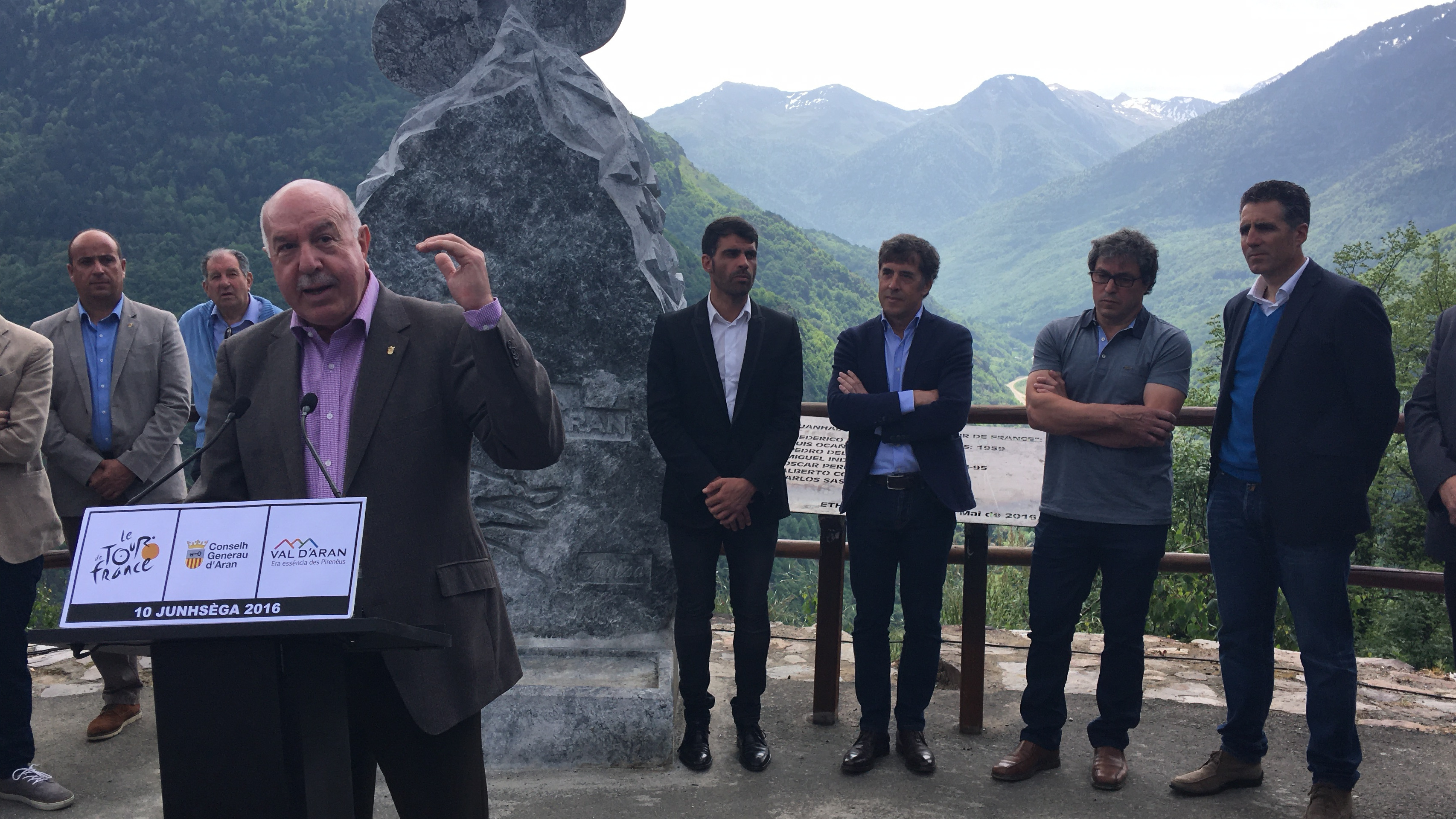 Durante el acto inaugural del monolito de los vencedores, el sindic d’Aran Carlos Barrera, ha querido destacar la tradición ciclista del Valle de Aran y su vinculación con el Tour de Francia, sobre todo en el Baix Aran, por la conexión que representa el puerto del Portillon entre el Valle de Aran y Francia. El sindic d’Aran, ha señalado que para los aficionados al ciclismo del Valle de Aran y para todos sus habitantes, poder participar en la organización de una etapa del Tour de Francia es una gran satisfacción, y que el Govèrn d’Aran, quiere que en los próximos años el Valle de Aran siga optando a acoger alguna de las etapas de la gran ruta francesa.