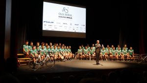Las plantillas profesional y élite y sub 23 de Caja Rural-Seguros RGA han comparecido este jueves en el escenario de Baluarte, el Palacio de Congresos y Auditorio de Navarra, para la puesta de largo de la temporada 2017. Un acto dirigido por Juan Mari Guajardo que ha contado con representantes de los principales patrocinadores del equipo y en el que se han emitido diversos videos destacando la labor formativa y solidaria del conjunto.
