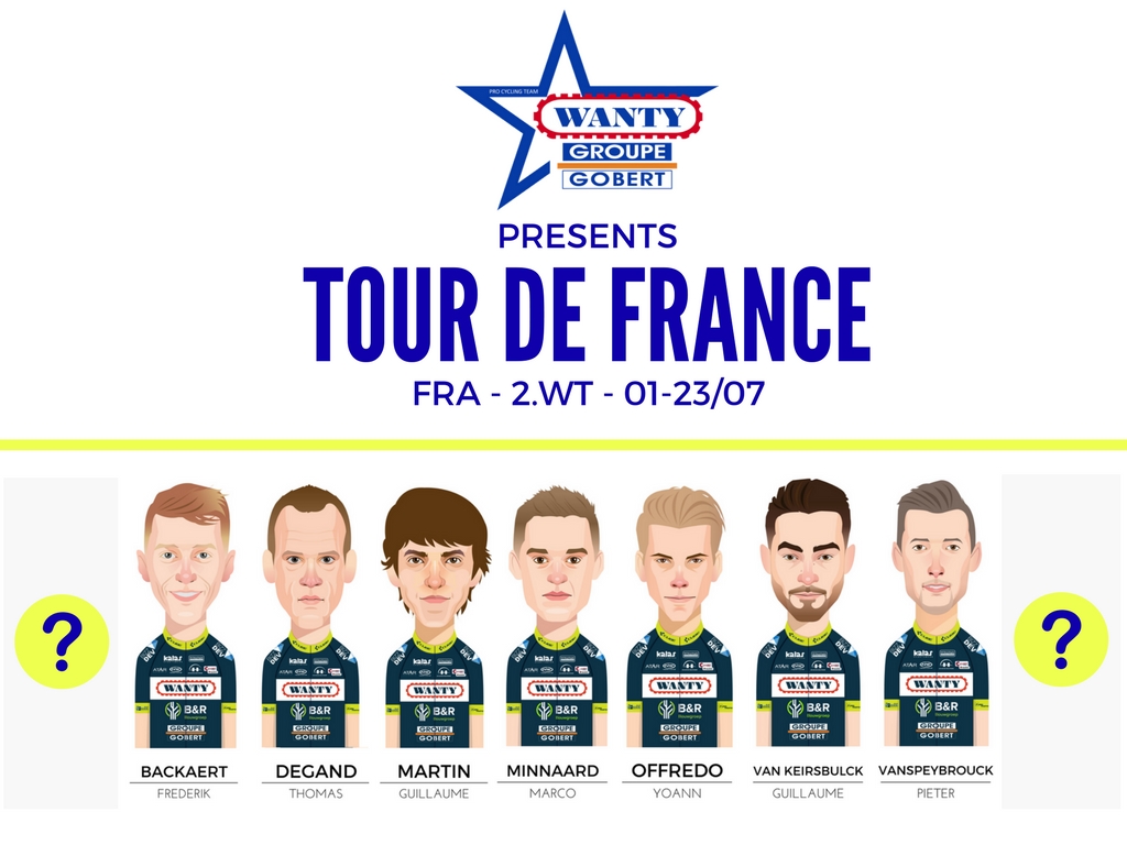 A tres semanas antes de la Grand Départ del Tour de Francia en Düsseldorf, el Wanty-Groupe Gobert ha anunciado una primera parte de su selección. De momento, son siete los ciclistas que se aseguran su participación en el 104º Tour de Francia, el primero de este equipo. Se trata de Frederik Backaert, Thomas Degand, Guillaume Martin, Marco Minnaard, Yoann Offredo, Guillaume Van Keirsbulck y Pieter Vanspeybrouck.