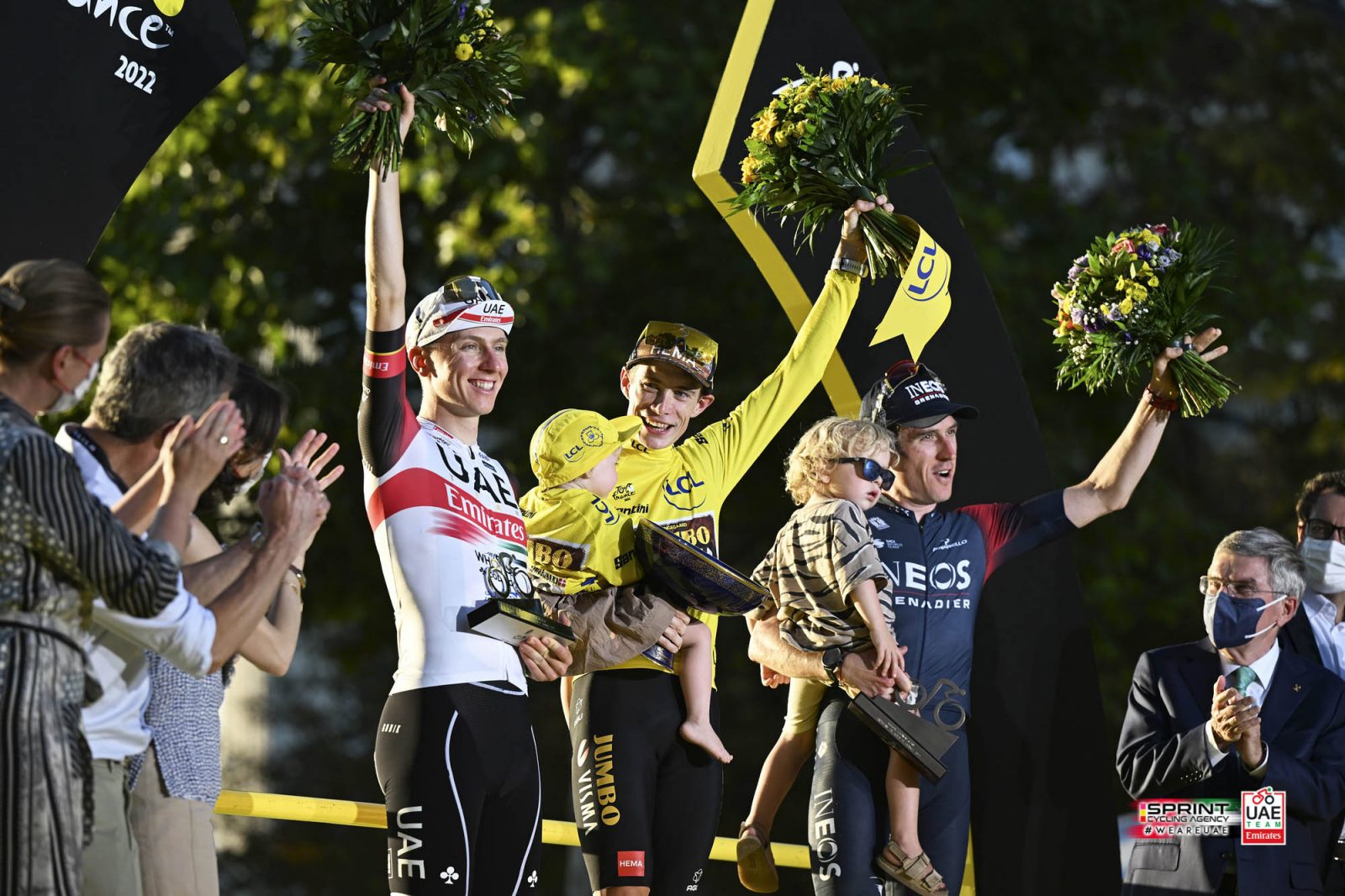 Pogacar, en el segundo escalón del podio de París © UAE Team Emirates