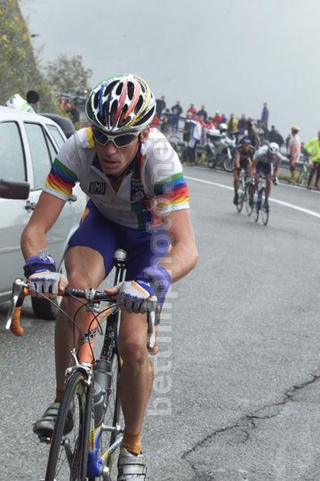 La carrera, sin embargo, comenzó a moverse y fue, nada más y nada menos que el dos veces campeón del Tour de Francia, Lance Armstrong, el que, con sendos ataques, puso en jaque a todo el pelotón. Solo Mazzoleni consiguió aguantar su rueda cuando, restando unos 40 kilómetros, el texano imprimía un fortísimo ritmo en la cabeza.