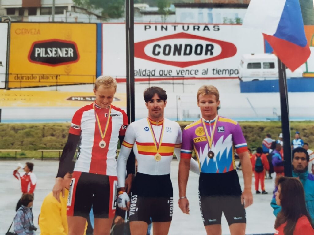 La gran ventaja que encontró en Quito fue la altitud, “pero el velódromo era muy malo, muy bacheado. Además, las bicis no tenían nada que ver con las de ahora. Eran de hierro, sin acoples, y el desarrollo que poníamos era un 49 x 14. Con ello, la última vuelta llevabas tal cadencia que no podías hacer ni fuerza, parecía que los pedales iban solos. Pero al mismo tiempo, con tanta cadencia el láctico te subía mucho más. Eso, y la sensación de ahogo”.