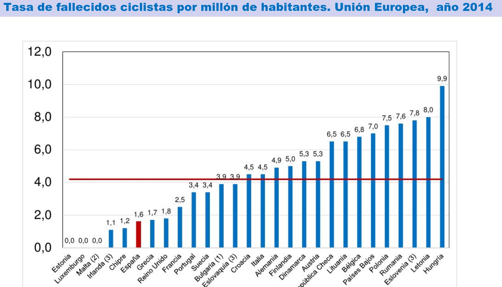 Entre el resto de datos, uno más para añadir: España se encuentra entre los países con una tasa de fallecidos ciclistas por millón de habitantes de la Unión Europea con el 1,6. El peor parado en este sentido es Hungría con una tasa de 9,9, seguida de Letonia con 8,0.