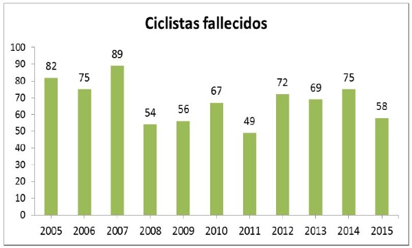 En 2015, último año con cifras consolidadas, los usuarios de las bicicletas se vieron implicados en 7.186 accidentes en los que fallecieron 58 ciclistas, 652 resultaron heridos hospitalizados.