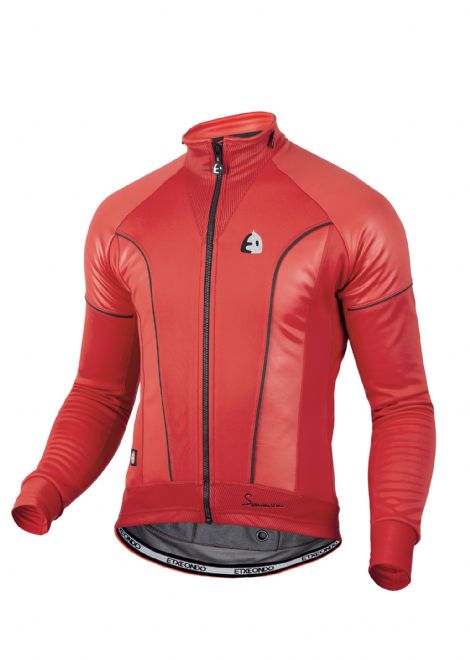 Siete chaquetas de invierno, tres maillots de manga larga, siete culotes largo o piratas y una notable serie de chalecos y «capas» (impermeables, chubasqueros…) forman el amplio catálogo de Etxeondo para este otoño-invierno. De las chaquetas destaca el modelo Summun, ahora en rojo, y que supone un auténtico «tour de force» de los responsables para poner a prueba sus máximas capacidades para crear la mejor chaqueta posible. Un modelo de gama muy alta que supone un hito para Etxeondo. Está desarrollada pensando en todos los detalles que proporcionan la máxima comodidad y protección al ciclista frente a las duras jornadas de invierno. Este tejido de Windstopper Soft Shell mantiene el cuerpo caliente a la vez que garantiza una excelente transpiración. Además se adapta a la perfección a la figura del ciclista para mayor comodidad.