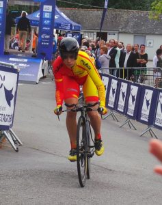 La riojana salía inmediatamente antes de la futura campeona y sabía que más pronto que tarde «me iba a doblar, era lo previsto. Ha sido el kilómetro seis y aunque Ramonchu me dijo que intentara seguirla, sabía que era imposible, ya que llevaba un ritmo muy fuerte. Por lo demás, creo que he hecho una buena crono desde el punto de vista técnico, aunque me haya faltado fuerza y velocidad. No me ha salido bien, pero tampoco mal».