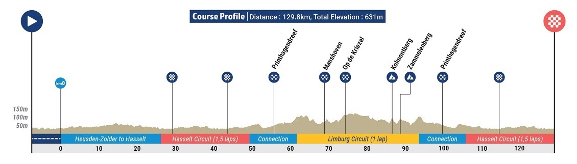 Fondo junior hombres: Heusden-Zolder – Hasselt (129,7 km) (9.00 h – 12:15 h)