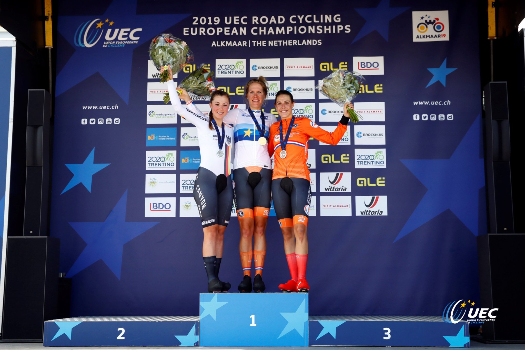 Klein y Brand acompañaron a Van Dijk en el podio © UEC Cycling