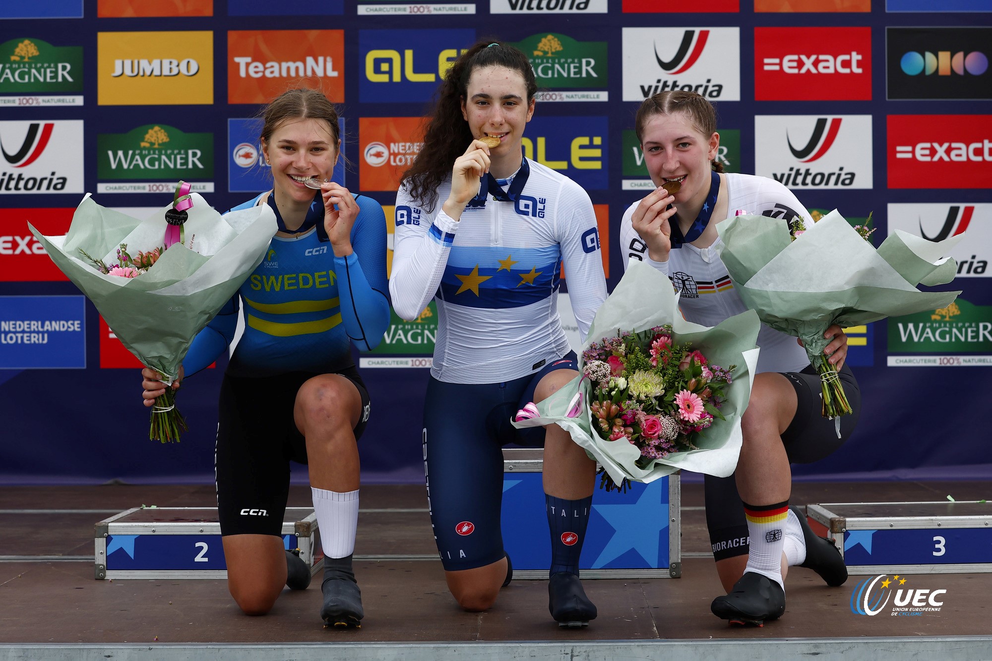 Federica Venturelli se ha proclamado campeona del mundo contrarreloj en categoría júnior después de marcar el mejor tiempo (26:23) en la línea de meta. La italiana, que el año que viene correrá en el conjunto filial del UAE, superó por 24 segundos a Stina Kagevi (26:47) que se colgó la plata y a Hannah Kunz (26:56) que se adjudicó la medalla de bronce. Violeta Hernández, única representante española, terminó en la 43ª plaza a 4:44 de la vencedora italiana.