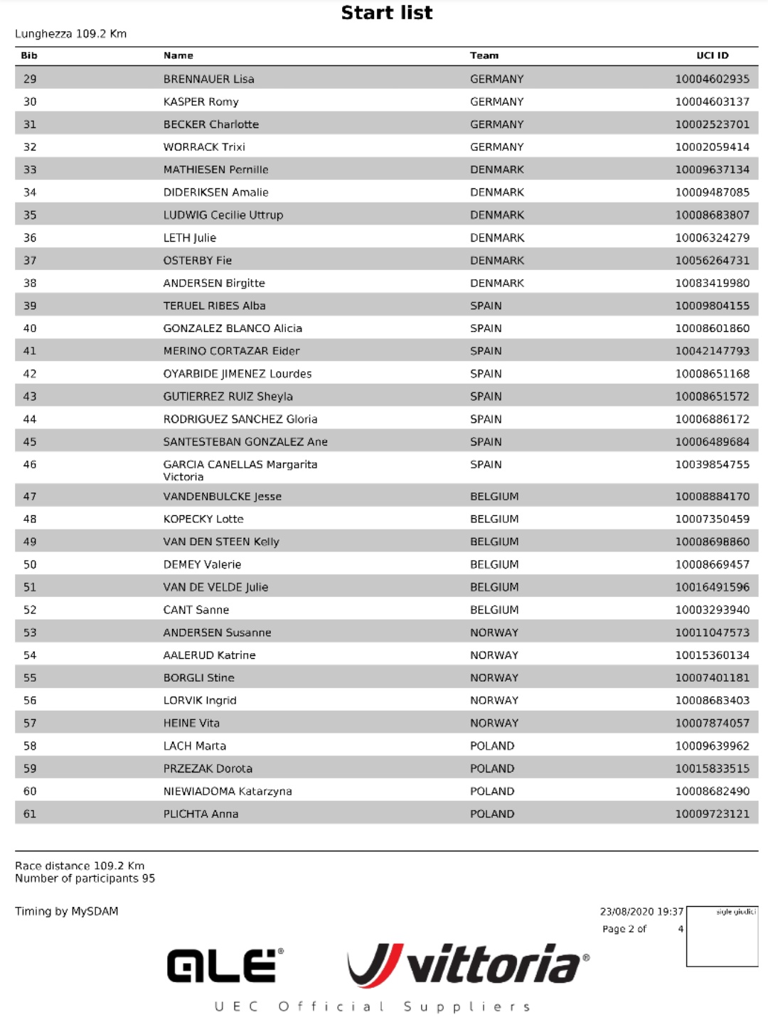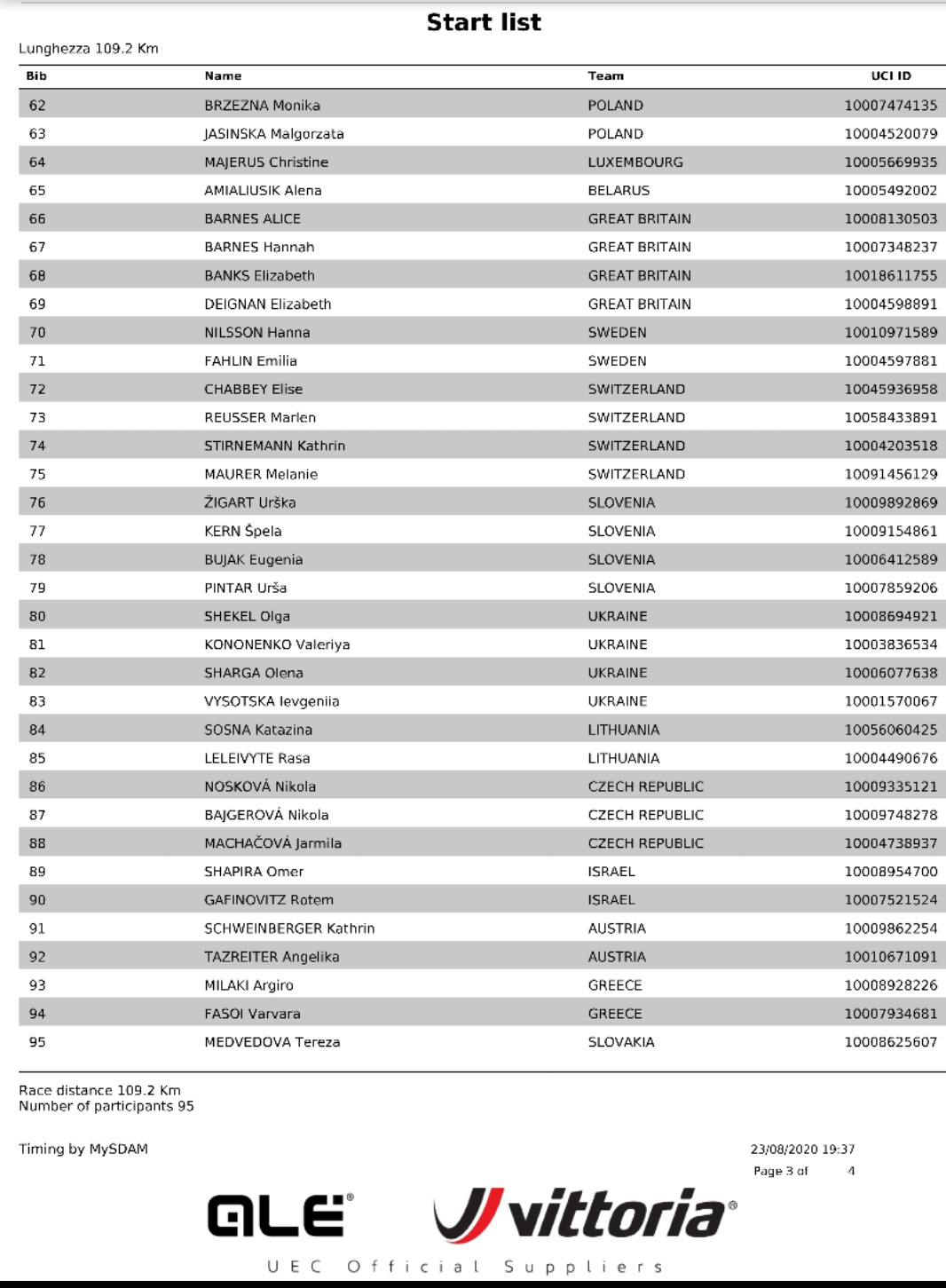 Elisa Longo Borghini. «Al final, Annemiek (Van Vleuten) era la más fuerte. Pero estoy súper feliz porque luché hasta el final. Sentí que estaba luchando por el primer puesto del podio hasta el final, fue una gran carrera y una buena promoción del ciclismo femenino. Me gusta correr con mal tiempo. La lluvia realmente no me molesta. Aunque, por supuesto, prefiero condiciones secas como las demás, pero este clima hizo que la carrera fuera dura e intensa. Al final, sabía que podía jugar por la victoria, realmente quería ese maillot. Pero ganó la mejor».