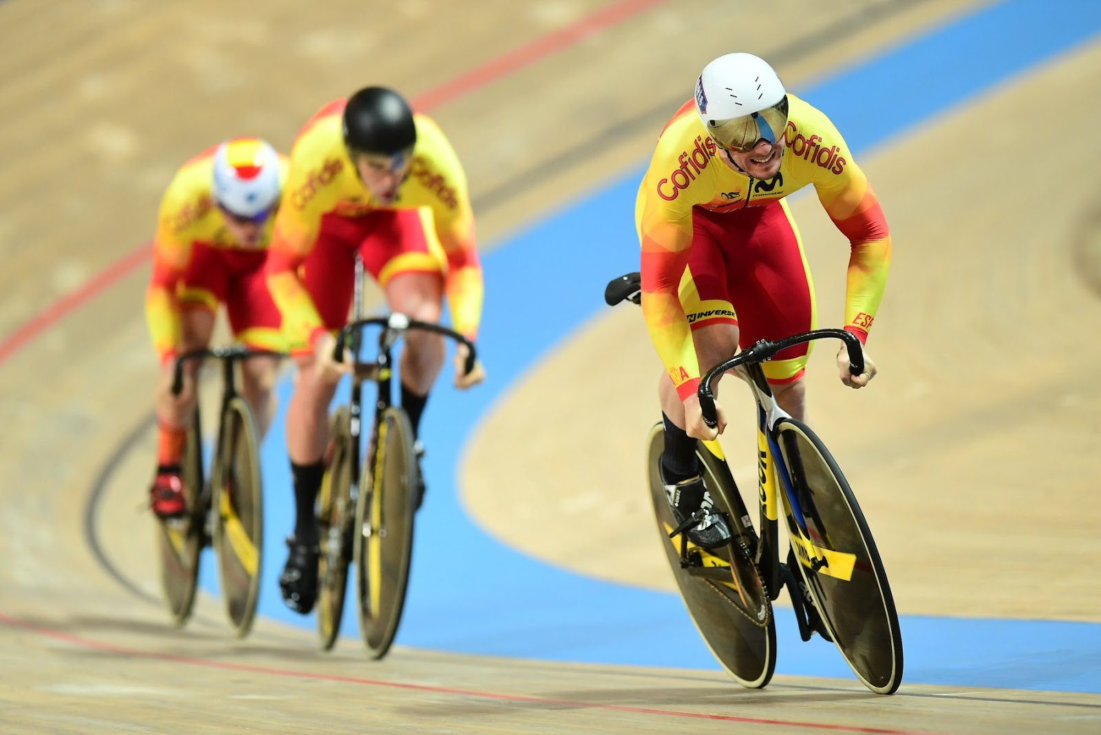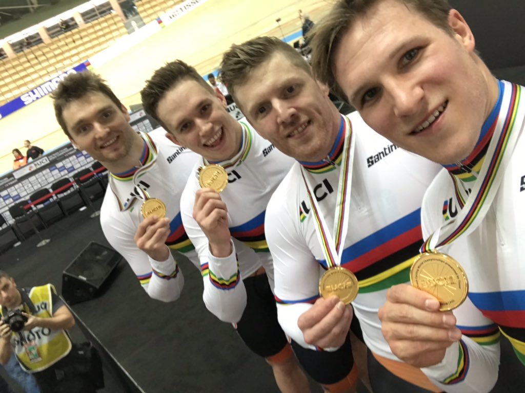 Paises Bajos, que solamente empleo a Jeffrey Hoogland en la final, supliedo a Mathijs Buchli, junto a Roy Van den Berg y Harrey Lavreysen, se llevaba el oro con un sensacional tiempo de 42.151 -a apenas tres décimas del record del mundo en altitud de Alemania- frente a Gran Bretaña (Jack Carlin, Jason Kenny y Ryan Owens), con Francia superando a Alemania en la lucha por el bronce.
