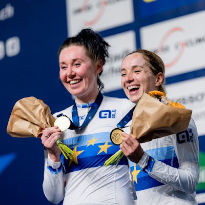 Pasando a la femenina, Gran Bretaña, con Katie Archibald y Elinor Barker mostró su potencial en las puntuaciones intermedias: ganando cinco de las once y la última, no necesitaría nada más para llegar a los 38 puntos. El verdadero duelo estuvo por las otras plazas del podio, con Francia (Clara Copponni y Victoire Berteau) más efectiva que Italia (Elisa Balsamo y Vittoria Guazzini), 25 a 19, y que Bélgica (Lotte Kopecky y Shari Bossuyt), que no tuvo muchas apariciones, pero sí peligrosas.
