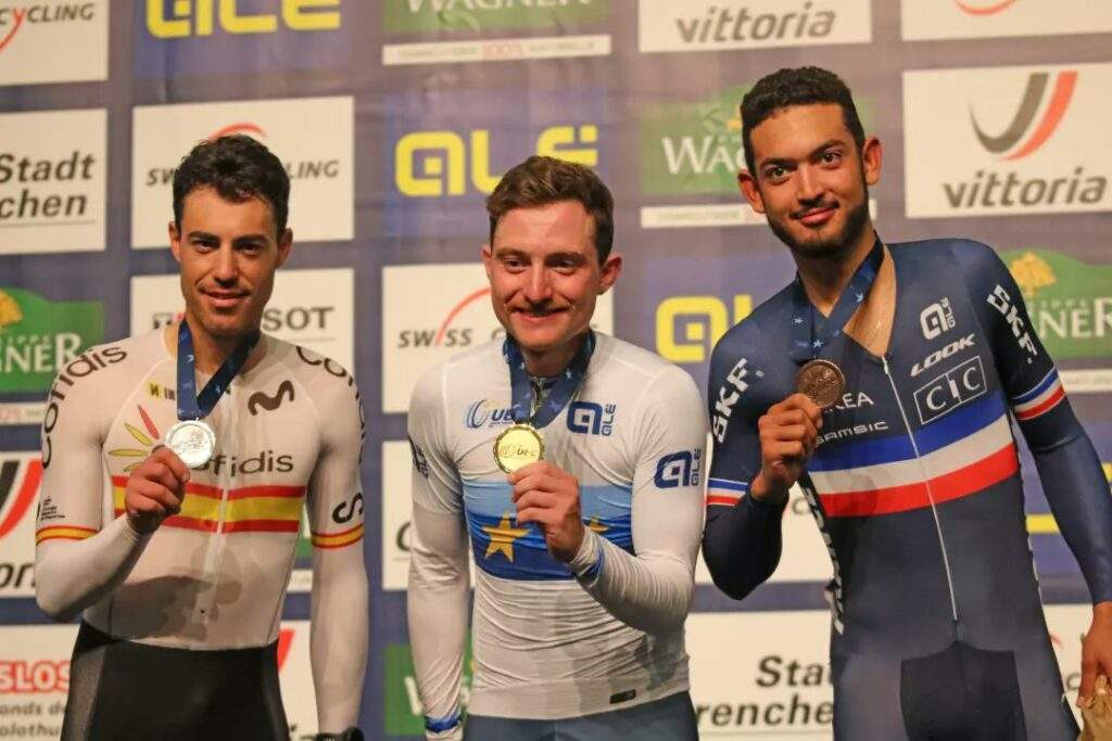 Y en la final, con todos los ciclistas haciendo tiempos superiores, Dornbach si mostró sus aspiraciones con un 59.778, a diferencia de un Truman que terminaba fundido y perdía sus opciones (1:00.291). Martínez tenía que superar el tiempo del alemán para ‘mantener’ la plata y así lo hizo, con un 59.687 peor también que en la clasificatoria, pero suficiente para cumplir el objetivo. “He corrido con lo mejor que tenía y confiaba que si lo había hecho por la mañana lo podría volver a hacer por la tarde. Y así ha sido y tengo mi recompensa”, decía el alicantino que se permitía bromear: “Si Hoogland no hubiera corrido sería campeón de Europa”. Y es que el neerlandés se salió de nuevo de la tabla con un 58.203.