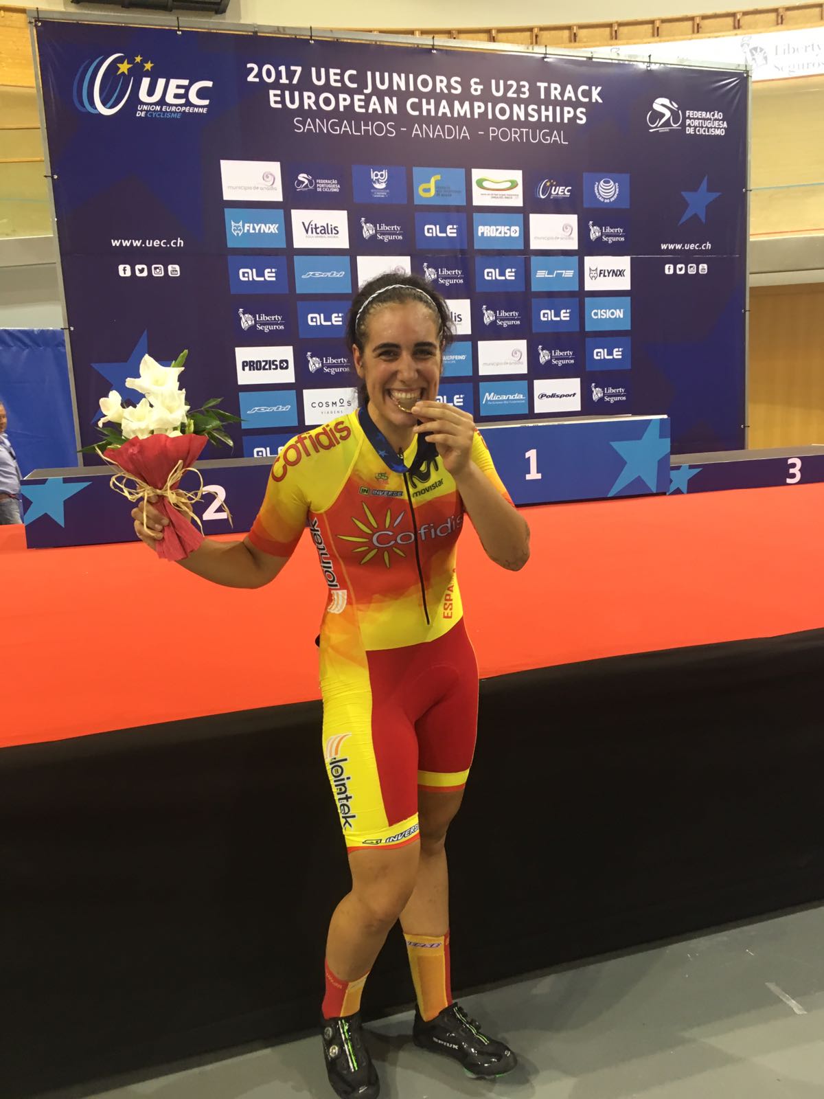 En esta misma prueba, pero en la versión masculina Xavier Cañellas era séptimo, con triunfo local para el portugués Rui Oliveira. La actuación española en esta primera jornada se completaba con la décima posición de Raúl Granados en el scratch junior.