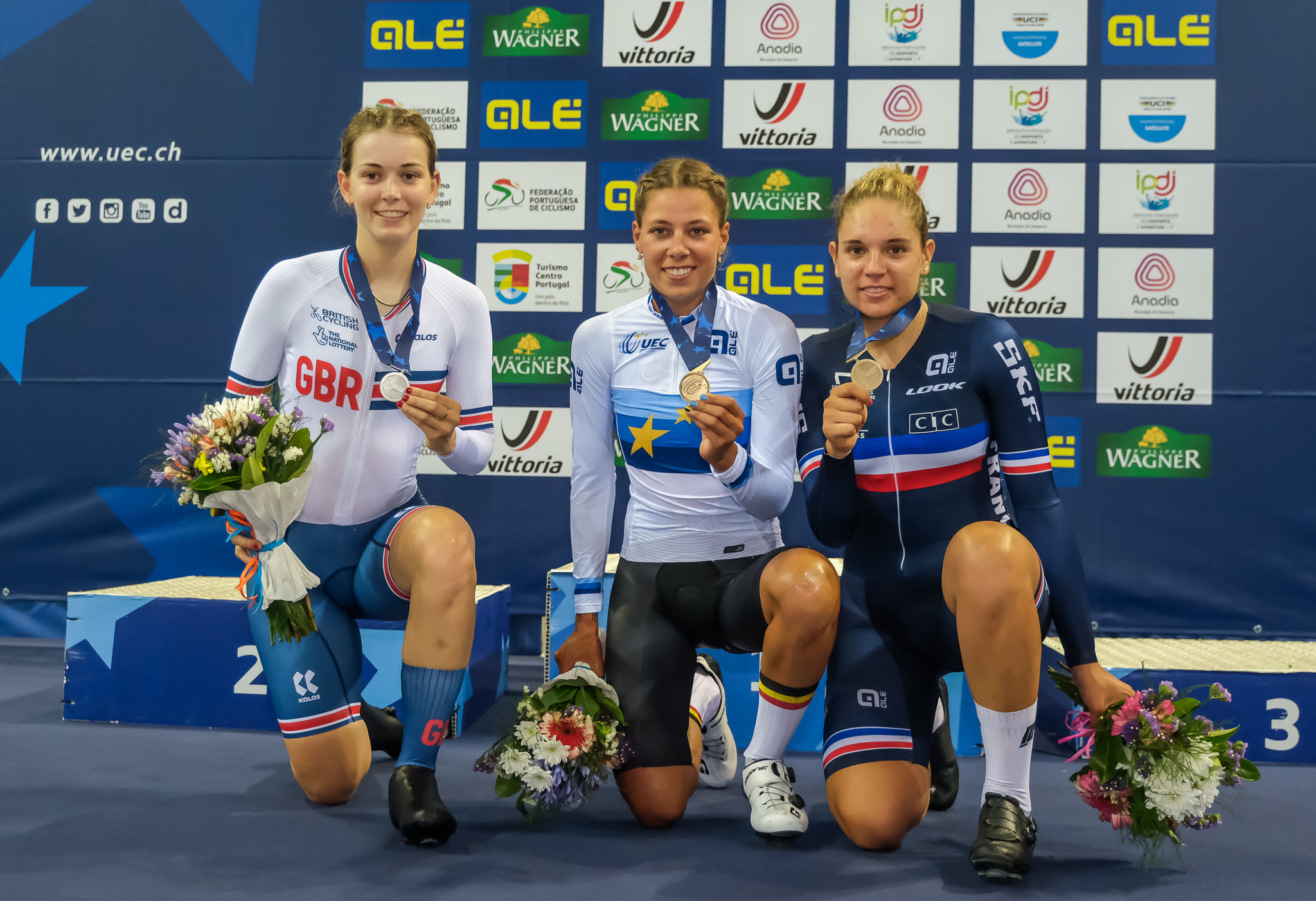 La prueba femenina no conoció otra dominadora que la italiana Federica Venturelli, que lograba su tercer oro en este Europeo tras los de la persecución individual y por equipos. Tras ganar el scratch escapando cuando quiso, era segunda en una carrera tempo marcada por una larga escapada de la polaca Maja Tracka, espoleada por una relegación en la prueba anterior, y volvía a ser la mejor en la eliminación.