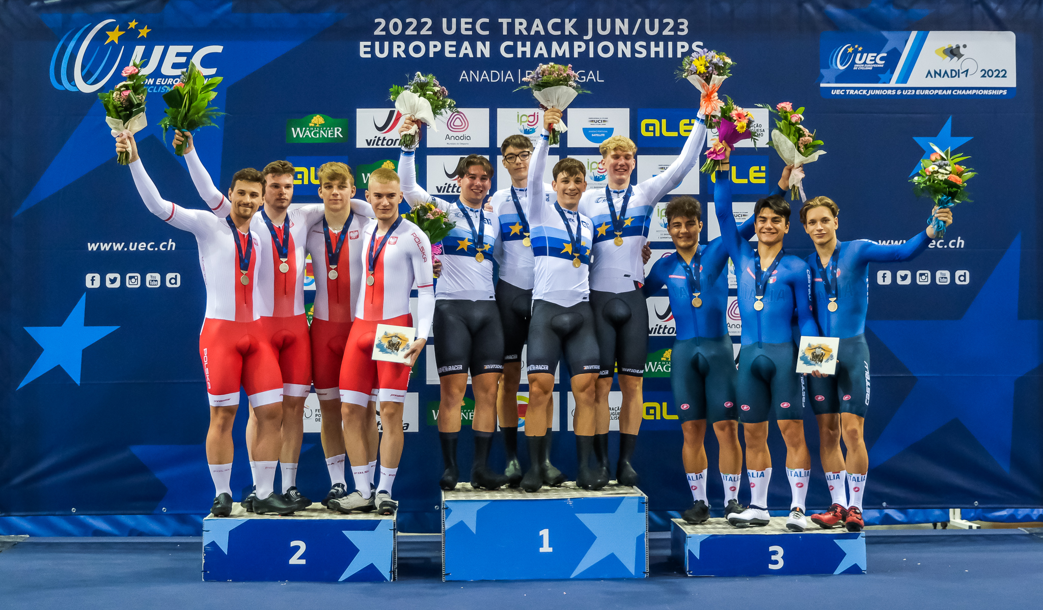 En la final absoluta, Bélgica plantó cara hasta la décima vuelta, pero cuando se quedó con tres corredores comenzó a abrir hueco Italia… y cuando Bélgica se quedó con dos por caída de uno de sus hombres al hacer el afilador todo terminó, con Davide Boscaro, Mattia Pinazzi, Manlio Moro y Niccolò Galli completando la distancia en 3:55.294, y con la plata para Gianluca Pollefliet, Noah Vandenbranden, Tuur Dens y Thibaut Bernard, que han demostrado ser un equipo a tener en cuenta en los próximos años.