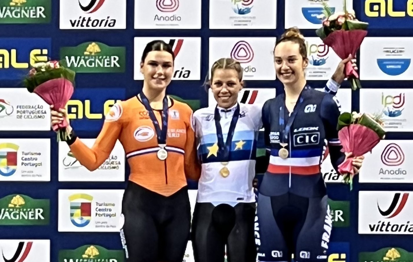 Lani Wittvrongel había conseguido unos minutos antes el primer título de estos Europeos, al ganar el scratch junior, superando sobre la misma línea a la polaca Maja Tracka, que había lanzado el sprint a falta de una vuelta con mucha potencia, con la israelí Ori Bash como bronce. Por su parte la navarra Saioa Orgambide terminaba undécima.
