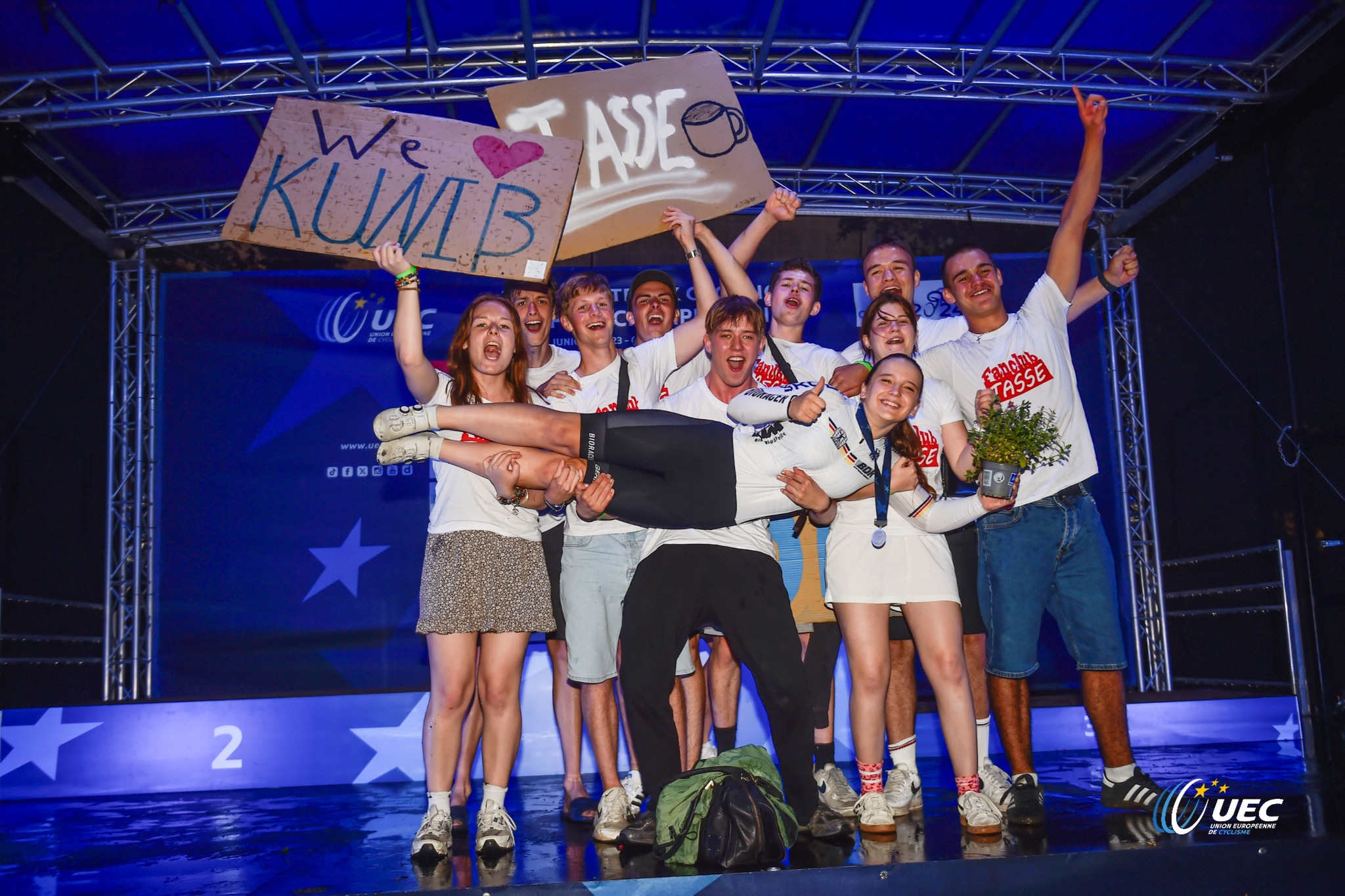Italia (Davide Stella, Cristian Fantini, Ares Costa y Alessio Magagnotti, con Eros Sporzon como quinto hombre) hizo valer su superioridad en la final en la que terminaría doblando a Alemania (Hugo Esch, Louis Gentzik, Paul-Felix Petry y Attila Höfig), aunque la verdad es que el equipo germano tuvo un problema al descolgarse su tercer ciclista, mientras que, en la B, Gran Bretaña se imponía claramente a Bélgica, 4:07.515 a 4:12.739.