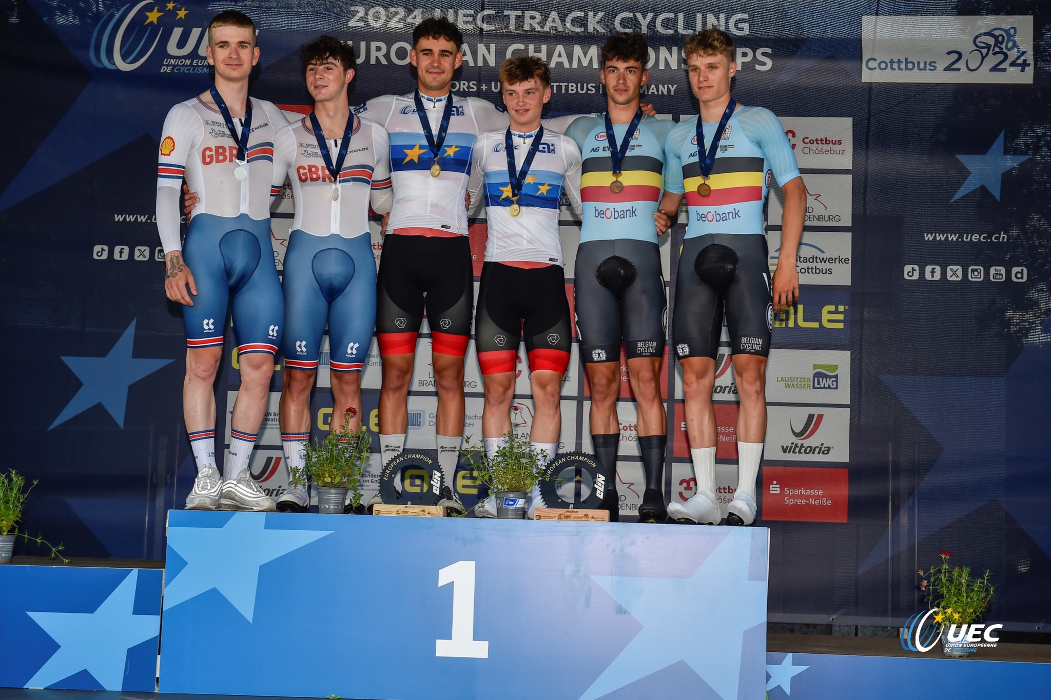 En sub23 el triunfo fue para el gran favorito, el belga Noah Vandenbranden, otro de los grandes protagonistas en Cottbus, ya que también ganó el ómnium, se llevó la plata con la cuarteta de su país y el bronce con su compañero de madison.