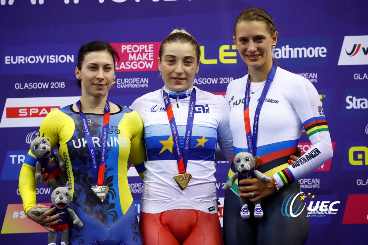 Pasando a la persecución femenina, sin presencia española, Lisa Brennauer y Katie Archibald protagonizaban una interesante final que la alemana ya había avisado de su estado de forma al marcar el mejor tiempo en la clasificatoria e impedir el que hubiera sido el quinto título consecutivo de la británica en la final directa, incluso con mejor marca: 3.26.879 a 3:29.577. El bronce, para la polaca Justyna Kaczkowska.