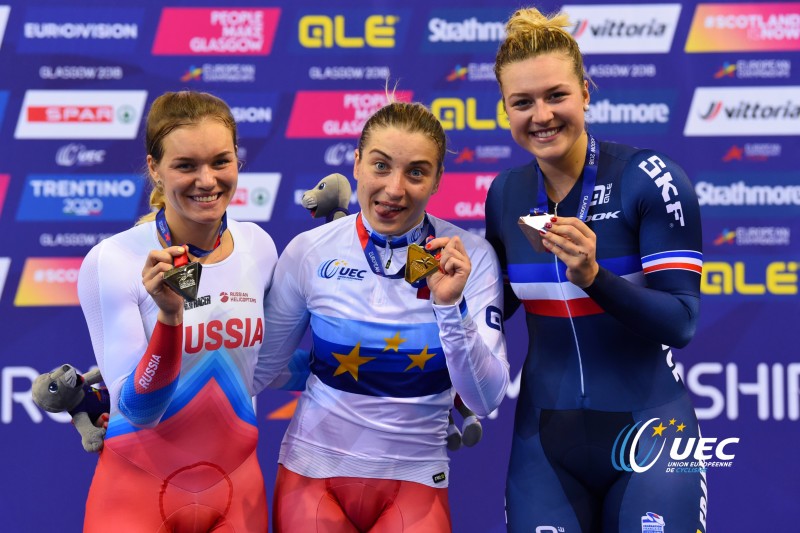Por su parte, Daria Shmeleva se iba con una cuarta medalla en el keirin, aunque no de oro como las anteriores, sino de bronce, en una final en la que dominó completamente la joven francesa Mathilde Gros, por delante de la campeona del mundo, la belga Nicky Degrendele, que lo intentó hasta el final sin poder doblegar a la gala. En cuanto a las españolas, ni Tania Calvo ni Helena Casas superaban su ronda y aunque coincidían en una misma repesca a tres junto a Urszula Los, no pudieron aprovechar esa superioridad numérica ante la velocidad de la polaca.