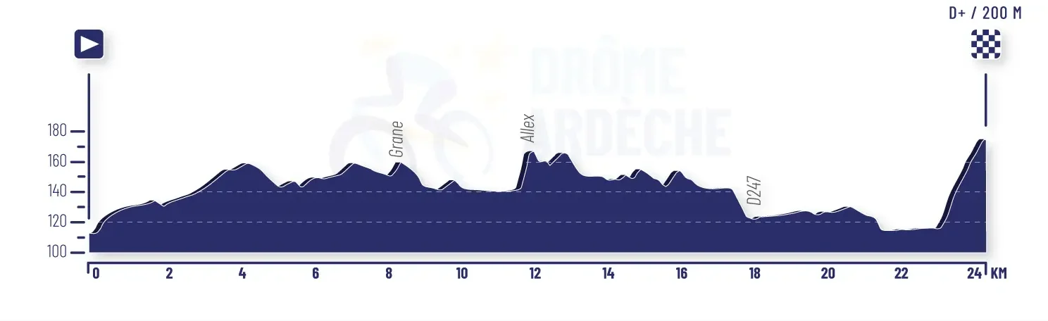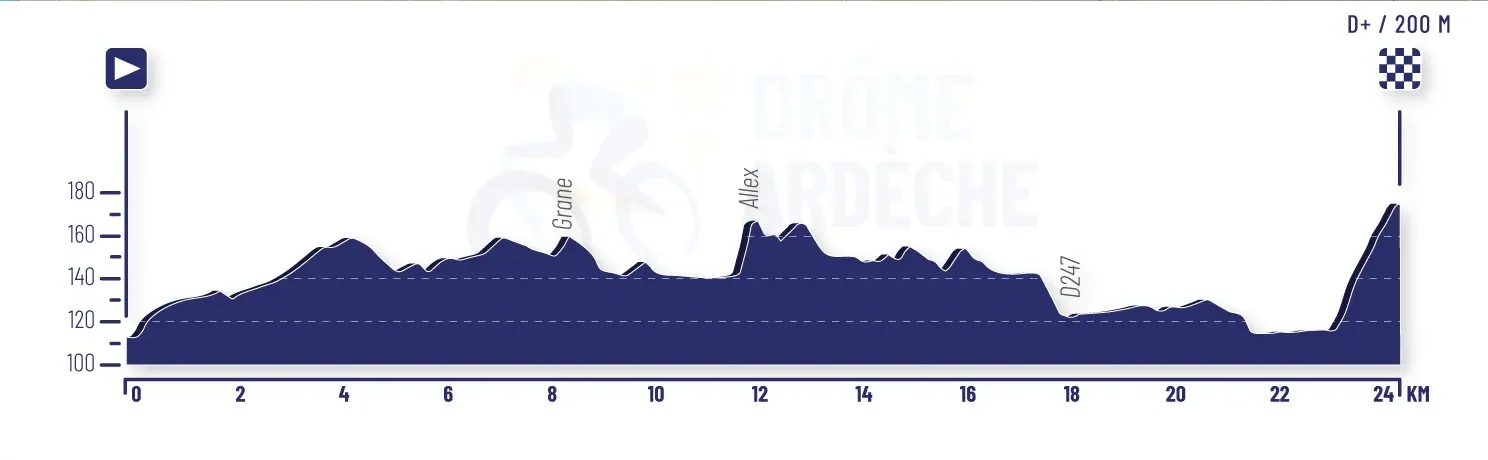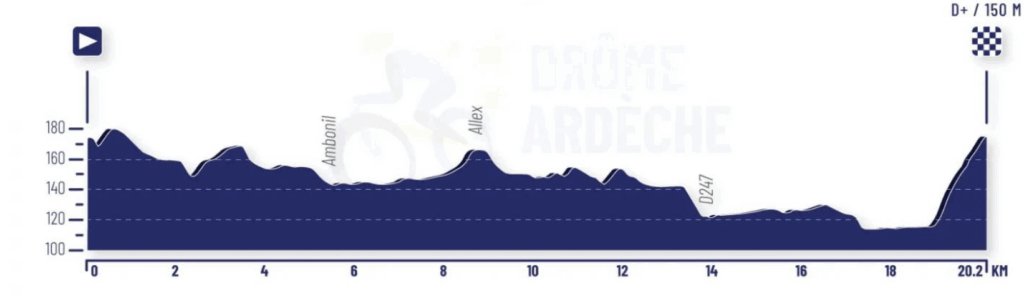 Las contrarrelojes se disputarán entre Loriol-sur-Drôme y Étoile-sur-Drôme con una distancia de 24,1 kilómetros para ambos sexos. También habrá contrarrelojes mixtas (Élite y Juniors), con salida y llegada en Étoile-sur-Rhône.