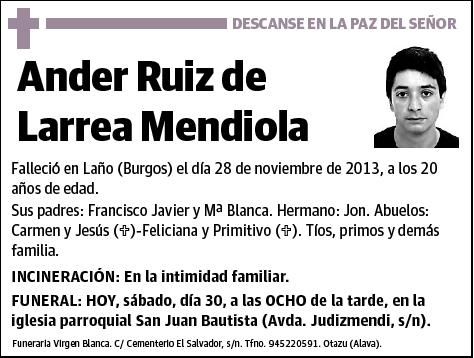 El funeral por el joven se celebra hoy en Vitoria a las 20 horas en la Iglesia San Juan de Judimendi, como publica elpedaldefrodo.