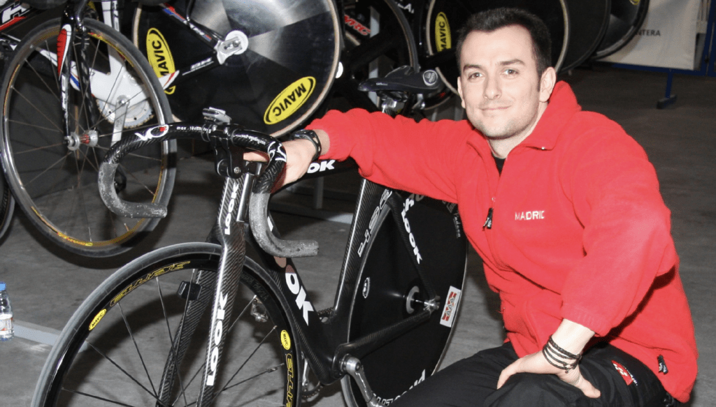 Aunque ya le conocía en sus inicios como velocista, como puente entre las generaciones de José Antonio Escuredo y José Manuel Moreno, por un lado, y los José Antonio Villanueva y Salvador Meliá, por otro, el primer momento en el que más estrechamente coincidimos fue curiosamente en la grabación de un ‘spot’ para Eurosport, una carátula para el Tour de Francia, en la que el director de la grabación se quedó encantado con su fortaleza física y le dio el irónico protagonismo de llevar el ‘maillot a pois’ de la montaña… y donde me demostró que era ‘muy grande’ en todos los sentidos. Su carrera tuvo un rumbo muy diferente al de las carreteras francesas, con ese culmen del velódromo Dunc Gray de Sydney en los Juegos Olímpicos de 2000. Por cierto, en aquel ‘bolo’ estuvieron también otros ciclistas amateurs que sí llegaron a destacar en el asfalto años después, como Miguel Ángel Martín Perdiguero o José Luis Rebollo.